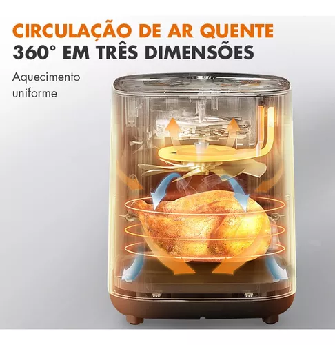 Esta incrível fritadeira de ar permite que você cozinhe sem a necessidade de usar óleo, proporcionando uma vida mais saudável para você e sua família.
