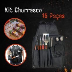 Kit Churrasco com avental 15 Peças Inox Churrasqueiro