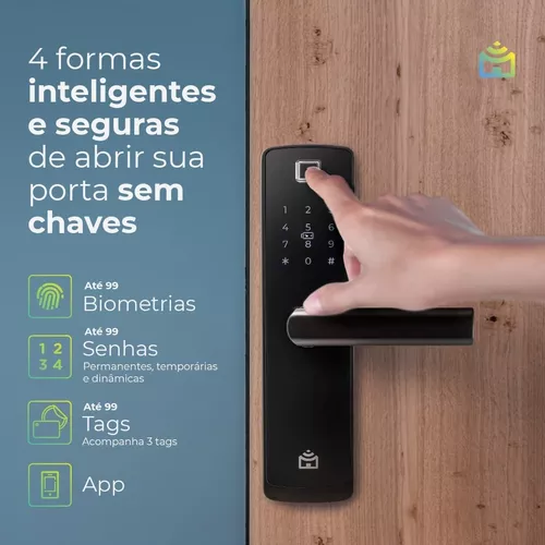 • Múltiplas Opções de Acesso: Senha, biometria, tags, chave mecânica e app.