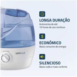 • Reservatório de 2,2 Litros: Possui capacidade para até 10 horas de uso contínuo, permitindo um longo período de funcionamento sem necessidade de reposição de água.