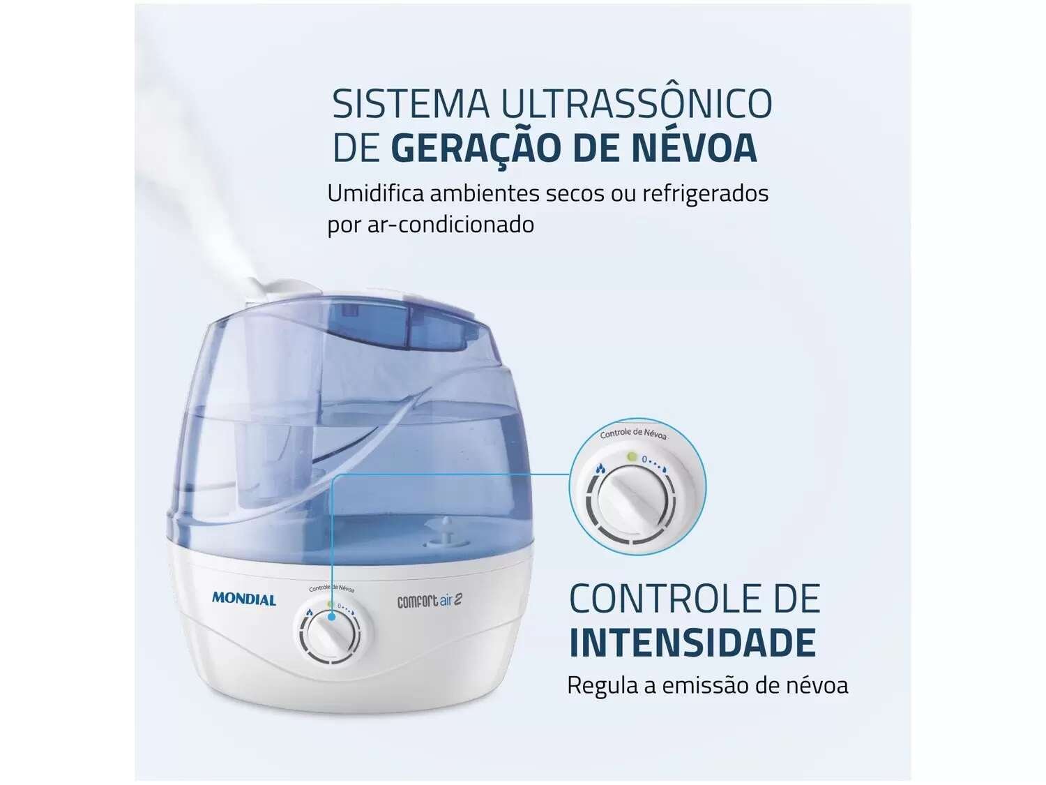 Com o Umidificador de Ar Ultrassônico Portátil Mondial Comfort Air 2 NUA-02, você pode desfrutar de um ar mais puro e agradável, contribuindo para a saúde e bem-estar de toda a família.