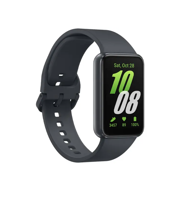 A Samsung Galaxy Fit3 é a maior das pulseiras, com uma tela de 1,6 polegada, medindo 42,9 x 28,8 x 9,9 mm e pesando 36,8 gramas.